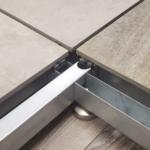 Connection spacers attach frames while also allowing for minor discrepencies in porcelain/ceramic tile dimensions (within 24 x 24 format) and based on many distributors/styles.